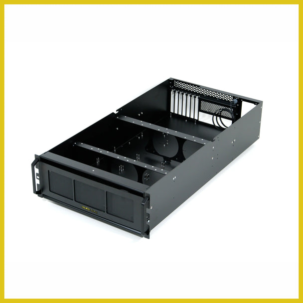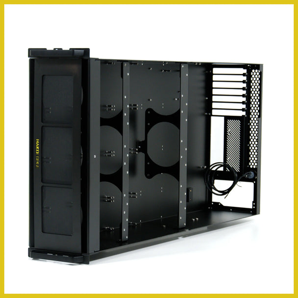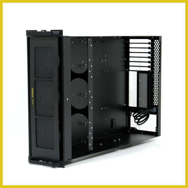 Support for auxiliary fan mounts can also be used to cool your PCIe slots. An exhaust fan can also be mounted to the back of the chassis.