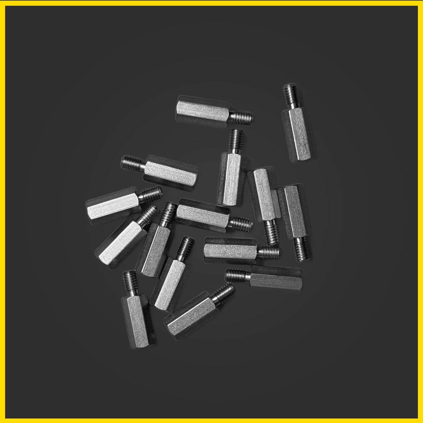 This package contains 15 motherboard standoffs and 15 matching screws.