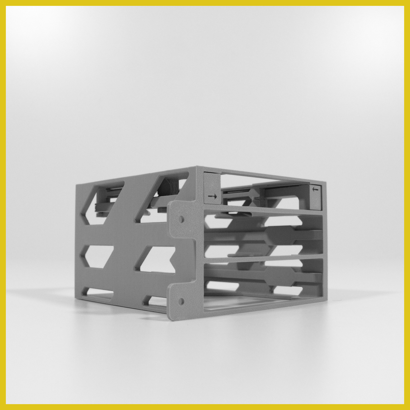 3D Printed PETG drive cages for SSD's. Only fits at the end of a row of cages in our HakoCore and HakoCore mini.